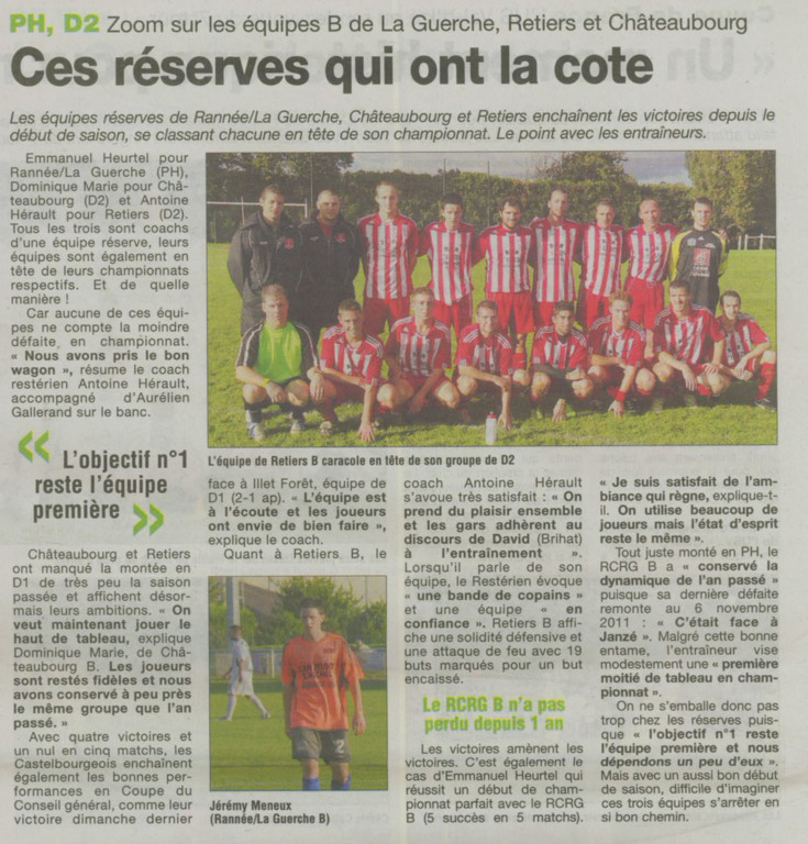 Le journal de Vitré proposait récemment un article sur les équipes réserves de Retiers, Chateaubourg et du RCRG, des équipes réserves qui ont la cote en ce début de championnat!!